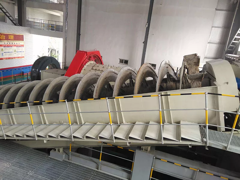 【उत्पादन अनुप्रयोग busing बुडलेल्या सर्पिल क्लासिफायरच्या ओव्हरफ्लो एंडवरील सर्पिल ब्लेड सर्व ओव्हरफ्लो पृष्ठभागाच्या खाली बुडलेले आहेत, जे प्रामुख्याने ओव्हरफ्लो कण आकारासह 0.15 ~ 0.07 मिमीच्या ग्रेडिंगसाठी योग्य आहे